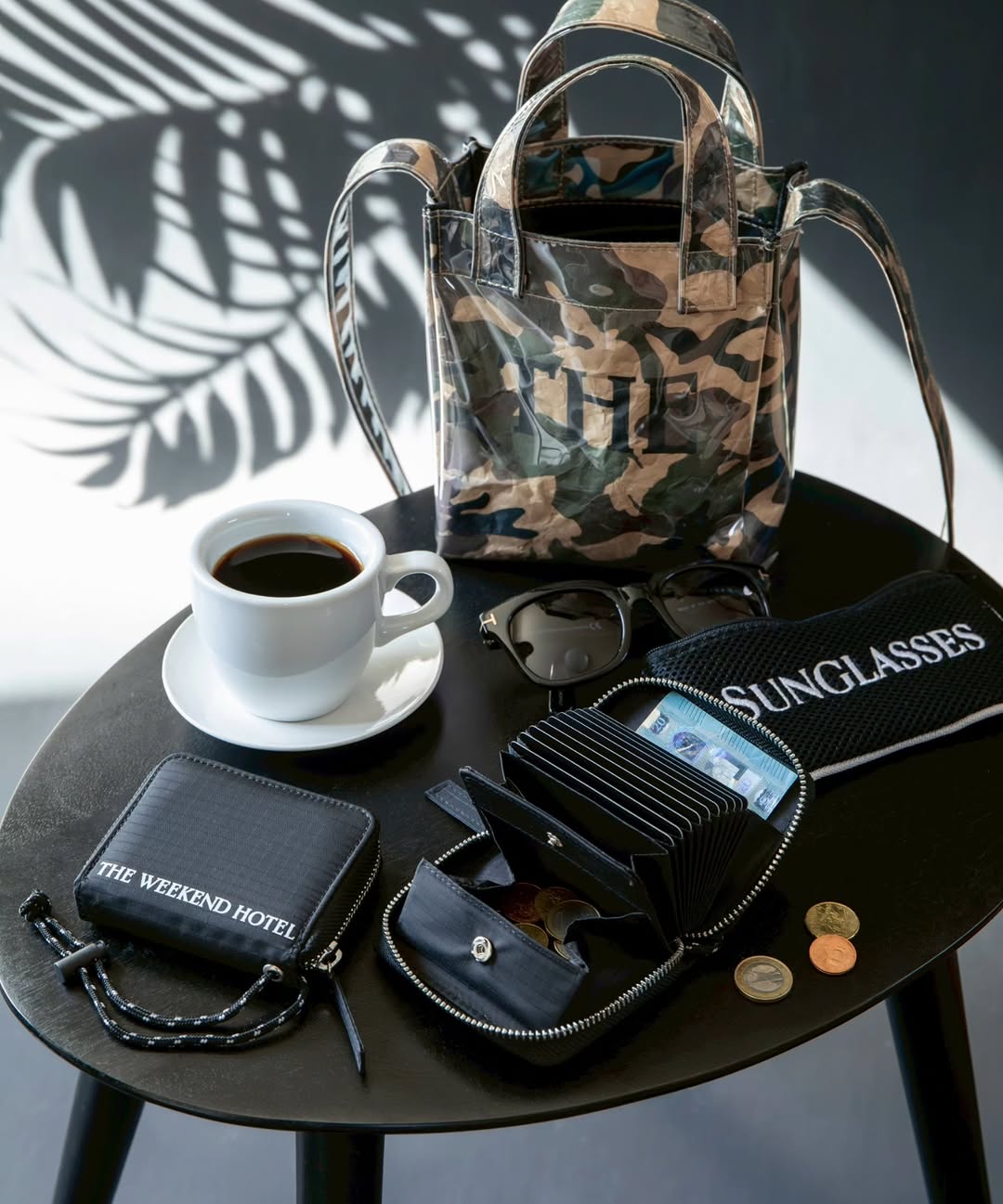 BLACK×WHITEのTHEWEEKENDHOTELのプリントがメンズライクなナイロン素材の財布です。